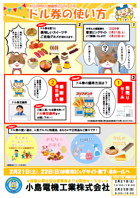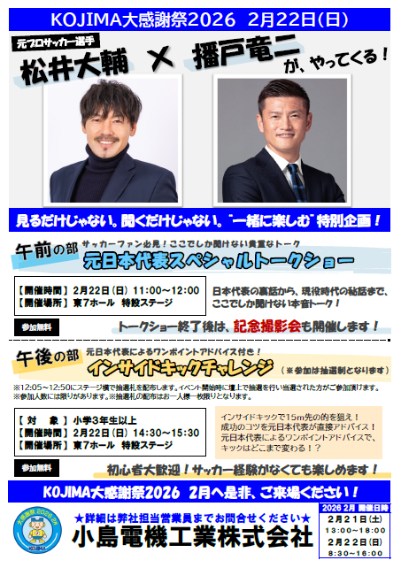 | 開催日 | 2026年2月21日(土) 13:00~18:00(17:00受付終了) 2026年2月22日(日) 8:30~16:00(15:00受付終了) |